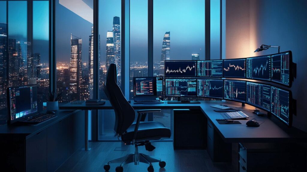 L'aménagement d'un espace de trading représente la base d'une activité performante sur les marchés financiers. Un setup adapté associant technologie et ergonomie permet d'optimiser les conditions de travail et d'analyse des marchés.