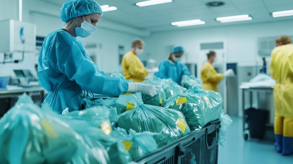 Les établissements de santé et médico-sociaux produisent entre 9 000 et 13 000 tonnes de déchets d’activités de soins à risque infectieux par an, représentant 15 à 20 pour cent de l’ensemble des déchets hospitaliers. Cette proportion significative souligne l’importance d’une gestion rigoureuse dès la production des déchets. Le tri à la source, effectué dans chaque unité de soins, permet de séparer efficacement les différents flux de déchets et d’éviter le mélange avec les déchets assimilables aux ordures ménagères.